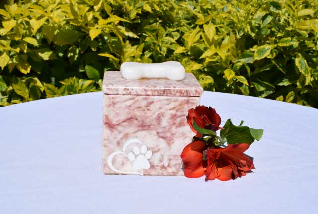 Urna de mármol modelo Piuvet con huesito detalle y con plaquita grabada de regalo. Es ideal para mascotas pequeñas.